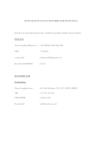 UNIKOM_NUR MALIRJA_LEMBAR KONTRIBUTOR PENELITIAN.pdf - Published Version