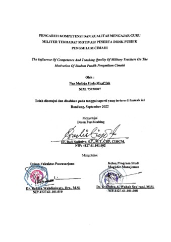 Muaf’fah, Nur Malirja Firda (2022) Pengaruh Kompetensi Dan Kualitas Mengajar Guru Militer Terhadap Motivasi Peserta Didik Pusdik Pengmilum Cimahi. Masters thesis, Universitas Komputer Indonesia.