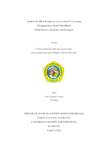 Lestari, Gita Cahyani (2022) Analisis Prediksi Kelulusan Course Pada E-Learning Menggunakan Model Klasifikasi. Masters thesis, Universitas Komputer Indonesia.