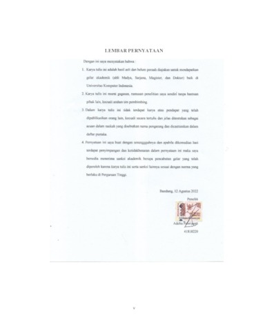 UNIKOM_ADELIA PEBRIYANTI_LEMBAR PERNYATAAN.pdf - Published Version