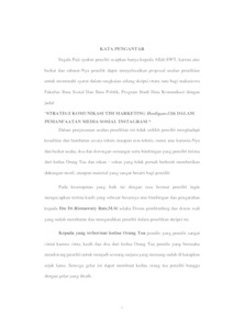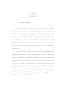 Penelitian ini bertujuan untuk mengetahui Strategi Komunikasi Tim Marketing Hooligans Supportwear (Hooligans12th) Dalam Pemanfaatan Media Sosial Instagram. Untuk menjawab masalah diatas maka peneliti menggunakan sub fokus : Tujuan Komunikasi, Sasaran Komunikasi dan Pesan Komunikasi. Penelitian ini merupakan penelitian kualitatif dengan metode deskriptif teknik pengumpulan data yang digunakan adalah wawancara, studi pustaka, observasi dan dokumentasi. Subjek yang diteliti adalah Hooligans12th informan penelitian berjumlah 4 orang yaitu Head Of Marketing, Manager Distribusi Hooligans12th dan 2 orang pengikut dari Instagram hooligans12th Berdasarkan hasil penelitian, diperoleh hasil penelitian bahwa Strategi Komunikasi Dalam Pemanfaatan Media Sosial Instagram yang dilakukan oleh Hooligans Supportwear sebelumnya menetapkan tujuan yang mana tujuan untuk kegiatan branding, selling dan communicating. Sasaran dari hooligans12th adalah pelanggan sebelumnya dan calon pelanggan baru dari media sosial Instagram, Pesan Komunikasi yang dibagikan adalah dengan membangun interaksi membagikan informasi tentang sepakbola serta menggunakan ciri khas dalam berinteraksi dengan para pengikutnya. Kesimpulan dari hasil penelitian, Hooligans12th melakukan penetapan Tujuan komunikasi, Sasaran komunikasi dan Pesan Komunikasi betujuan agar audiens dapat mengetahui tentang Hooligans Supportwear serta dapat menarik pasar yang sebelumnya sudah ada dapat kembali lagi tanpa harus terhambat oleh pandemic Covid-19 serta dapat mencapai para pengguna Instagram sebagai sasaran selanjutnya untuk kegiatan pemasaran. Saran penelitian, kegiatan pemasaran yang dilakukan oleh Hooligans12th dalam pemanfaatan media sosial dapat direncanakan lebih baik untuk mendapatkan hasil yang diinginkan oleh perusahaan, karena hooligans12th saat membuat konten hanya mengikuti hal yang sedang ramai dibicarakan di media sosial.