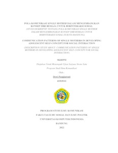 Pungkawati, Dewi (2022) Pola Komunikasi Single Mother Dalam Mengembangkan Konsep Diri Remaja Untuk Berinteraksi Sosial. Other thesis, Universitas Komputer Indonesia.