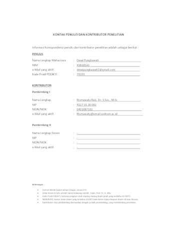 UNIKOM_Dewi Pungkawati_Lembar Kontak Penulis.pdf - Published Version