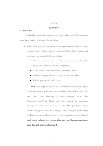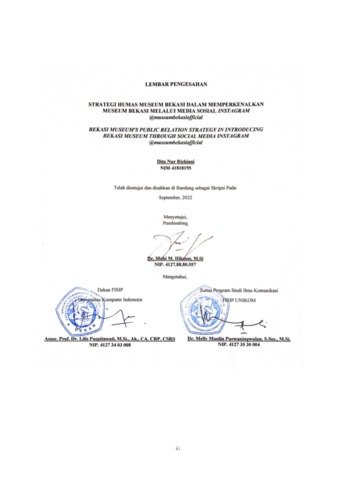 Kesimpulan penelitian ini adalah strategi humas yang dilakukan Museum Bekasi dalam memperkenalkan Museum Bekasi melalui media sosial instagram @museumbekasiofficial yang dilakukan melalui publication, event, dan inform or image telah berjalan sesuai dengan yang direncanakan. Saran penelitian ini terhadap Museum Bekasi adalah pihak Museum Bekasi telah cukup baik dalam pengelolaan instagram sebagai media untuk berkomunikasi dengan publik namun bisa dilakukan training dalam pengelolaan media digital agar pengelolaan akun @museumbekasiofficial dapat berjalan lebih maksimal.
