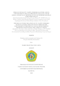 Cahya, Mario Shaputra Nur (2022) Peranan Humas Pt. Taspen (Persero) Kantor Cabang Umum Bandung Melalui Program Tanggung Jawab Sosial Lingkungan Kemitraan Dalam Mempertahankan Citra Perusahaan. Other thesis, Universitas Komputer Indonesia.