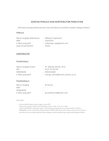 UNIKOM_Millania Puspitasari_KONTAK PENULIS DAN KONTRIBUTOR.pdf - Published Version