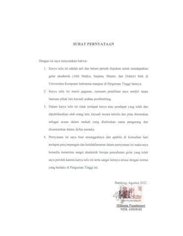 4. 41818102_Millania Puspitasari_SURAT PERNYATAAN.pdf - Published Version