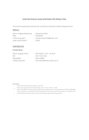 UNIKOM_41818169_MUHAMMAD RULI_KONTAK PENULIS DAN KONTRIBUTOR PENELITIAN.pdf - Published Version