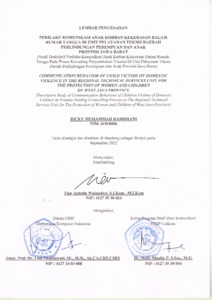 | Uncontrolled Keywords: | Perilaku Komunikasi, Komunikasi Verbal, Komunikasi Nonverbal, Hambatan Komunikasi, Anak, Korban KDRT |