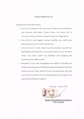 UNIKOM_Ricky Muhammad Ramdhani_Surat pernyataan.pdf - Published Version