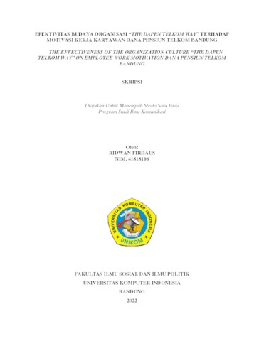 Firdaus, Ridwan (2022) Efektivitas Budaya Organiasasi “The Dapen Telkom Way” Terhadap Motivasi Kerja Karyawan Dana Pensiun Telkom Bandung. Other thesis, Universitas Komputer Indonesia.