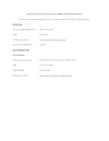 UNIKOM_RIDWAN FIRDAUS_KONTAK PENULIS DAN KONTRIBUTOR PENELITIAN.pdf - Published Version