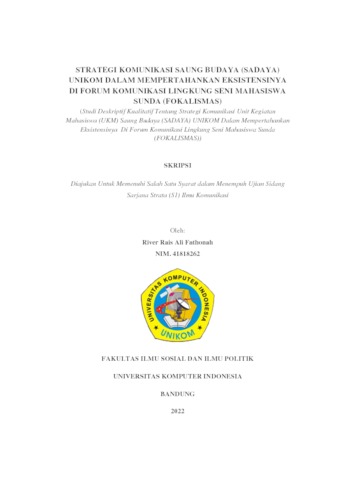 Fathonah, River Rais Ali (2022) Startegi Komunikasi Saung Budaya (Sadaya) Unikom Dalam Mempertahankan Eksistensinya Di Forum Komunikasi Lingkung Seni Mahasiswa Sunda (Fokalismas). Other thesis, Universitas Komputer Indonesia.
