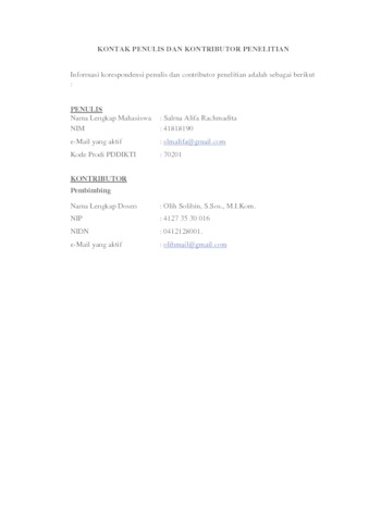 UNIKOM_SALMA ALIFA RACHMADITA_LEMBAR KONTAK PENULIS.pdf - Published Version