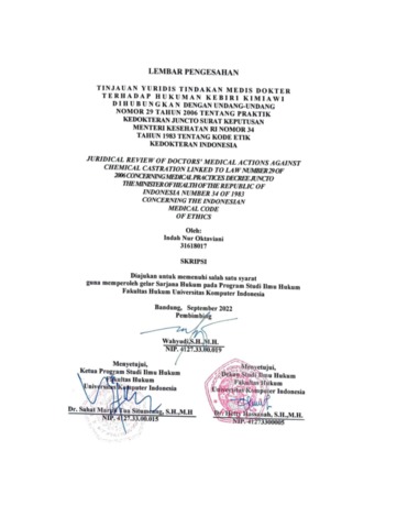 Oktaviani, Indah Nur (2022) Tinjauan Yuridis Tindakan Medis Dokter Terhadap Hukuman Kebiri Kimiawi Dihubungkan Dengan Undang-Undang Nomor 29 Tahun 2006 Tentang Praktik Kedokteran Juncto Surat Keputusan Menteri Kesehatan Ri Nomor 34 Tahun 1983 Tentang Kode Etik Kedokteran Indonesia. Other thesis, Universitas Komputer Indonesia.