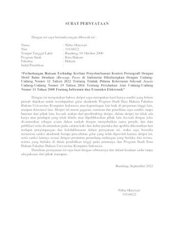 UNIKOM_Nitha Oktaviari_Surat Pernyataan.pdf - Published Version