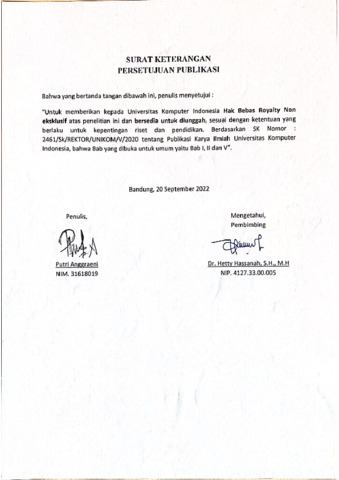 UNIKOM_31618019_PUTRI ANGGRAENI_SURAT PERSETUJUAN PUBLIKASI.pdf - Published Version