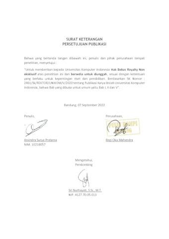 UNIKOM_Arvindra Surya Pratama_Surat Keterangan Persetujuan Publikasi.pdf - Published Version