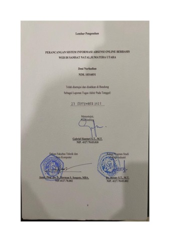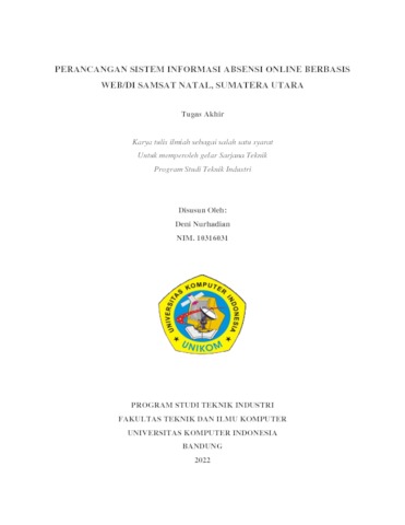 Nurhadian, Deni (2022) Perancangan Sistem Informasi Absensi Online Berbasis Web Di Samsat Natal. Other thesis, Universitas Komputer Indonesia.