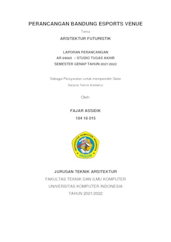 Assidik, Fajar (2022) Perancangan Bandung Esports Venue. Other thesis, Universitas Komputer Indonesia.