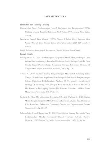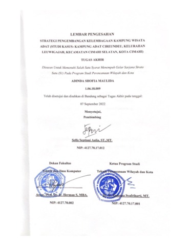 Maulida, Adinda Shofia (2022) Strategi Pengembangan Kelembagaan Kampung Wisata Adat. Other thesis, Universitas Komputer Indonesia.