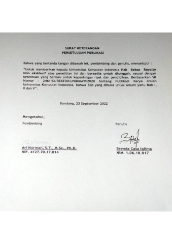 UNIKOM_Brenda Casa Iqlima_Surat Keterangan persetujuan publikasi.pdf - Published Version