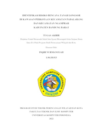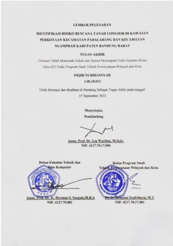 Nurmansyah, Fiqih (2022) Identifikasi Risiko Bencana Tanah Longsor Di Kawasan Perkotaan Kecamatan Padalarang Dan Kecamatan Ngamprah Kabupaten Bandung Barat. Other thesis, Universitas Komputer Indonesia.