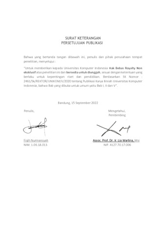 UNIKOM_FIQIH NURMANSYAH_LEMBAR KETERANGAN PERSETUJUAN PUBLIKASI.pdf - Published Version