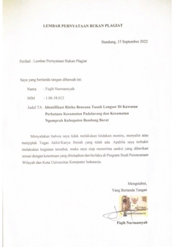 UNIKOM_FIQIH NURMANSYAH_LEMBAR PERNYATAAN BUKAN PLAGIAT.pdf - Published Version