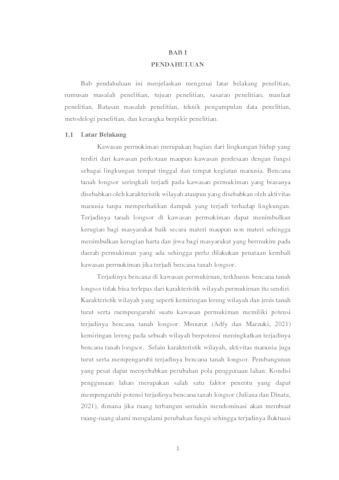 | Uncontrolled Keywords: | Perkotaan, Permukiman, Risiko Tanah Longsor, Peta Risiko |