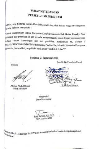 Qirom, Akmal Abdul (2022) Sistem Informasi Administrasi Keuangan De’premiere Futsal Berbasis Website. Other thesis, Universitas Komputer Indonesia.