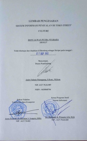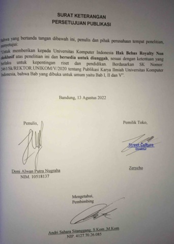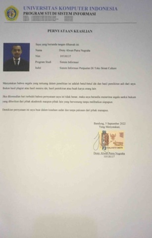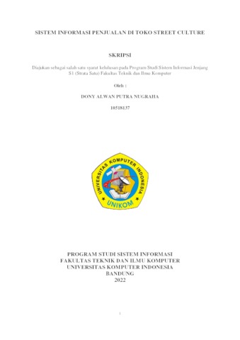 Nugraha, Dony Alwan Putra (2022) Sistem Informasi Penjualan Di Toko Street Culture. Other thesis, Universitas Komputer Indonesia.