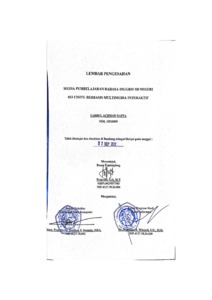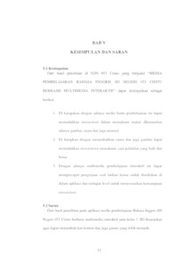 SD Negeri 053 Cisitu berletak di Jl. Sangkuriang No.87, Dago, Kecamatan Coblong, Kota Bandung, yang didirikan pada tahun 1951. SD Negeri 053 Cisitu mengunakan kurikulum 2013 dan proses pembelajaran yang dilakukan masih konvensional dimana guru memberikan materi masi menggunakan buku yang di download secara online di karenakan Bahasa Inggris tidak termasuk dalam kurikulum 2013. Salah satu pelajaran yang masi menggunakan pembelajaran secara konvensional adalah Bahasa Inggris. Pembelajaran yang diberikan menggunakan buku online terdapat berupa soal pilihan ganda yang harus di catat terlebih dahulu setelah itu baru dapat dikerjakan dengan batas waktu yang telah di tetapkan oleh guru. Dengan begini terkadang siswa/siswi terlambat mengerjakan latihan yang diberikan sehingga guru terlambat dalam memasukan nilai. Tujuan penelitian ini untuk membangun aplikasi multimedia pembelajaran Bahasa Inggris, agar siswa/siswi dapat lebih tertarik mempelajari Bahasa Inggris dengan visualisasi yang menarik. Dalam membangun sebuah aplikasi pembelajaran Bahasa Inggris ini menggunakan metode penelitian deskriptif, pengembangan prototype dan metode pendekatan berorientasi objek dimana menggunakan alat bantu use case, scenario, activity diagram dan mengunakan aplikasi adobe flash cs6 dan action script 3.0. Aplikasi ini dapat memudah kan siswa/siswi dalam memahami materi Bahasa Inggris, mengerjakan soal latihan dan juga dapat bermain games untuk menambah daya ingat dari pelajara Bahasa Inggris
