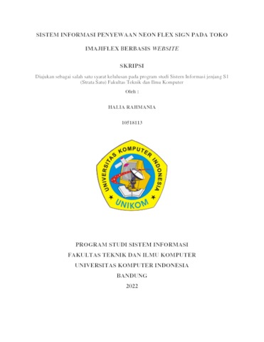 Rahmania, Halia (2022) Sistem Informasi Penyewaan Neon Flex Sign Pada Toko Imajiflex Berbasis Website. Other thesis, Universitas Komputer Indonesia.