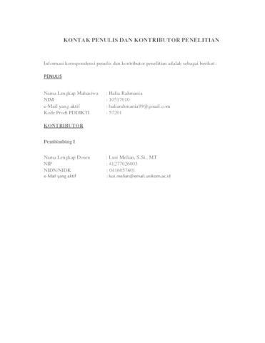 UNIKOM_Halia Rahmania_Lampiran Kontak Penulis.pdf - Published Version