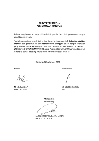UNIKOM_Muhamad Iqbal Aditya Perdana_Surat Keterangan Persetujuan Publikasi.jpg - Published Version