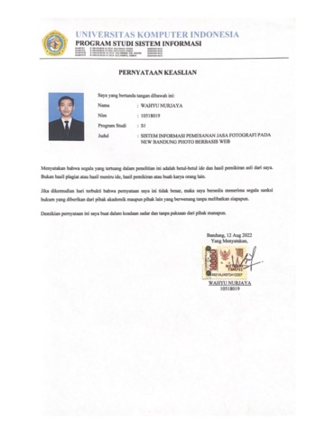 UNIKOM_Wahyu Nurjaya_Lembar Pernyataan Keaslian.pdf - Published Version