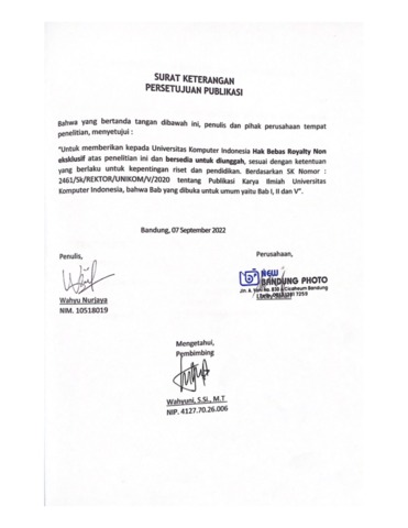 UNIKOM_Wahyu Nurjaya_Surat Keterangan Persetujuan Publikasi.pdf - Published Version