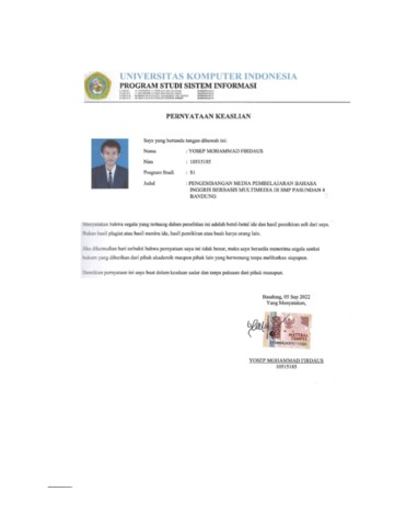 UNIKOM_Yosep Mohammad Firdaus_LEMBAR KEASLIAN.pdf - Published Version