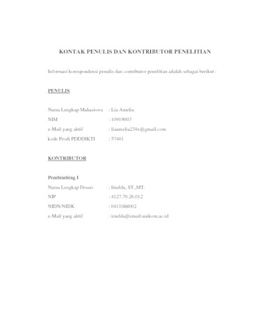 UNIKOM_Lia Amelia_Lampiran2 Kontak Penulis dan Kontributor Penelitian.pdf - Published Version