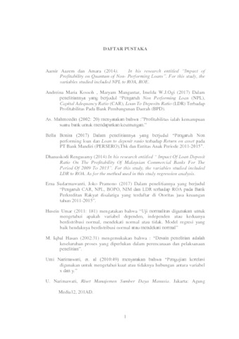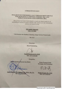 | Uncontrolled Keywords: | Non Performing Loan (NPL) dan Profitabilitas (ROA). |