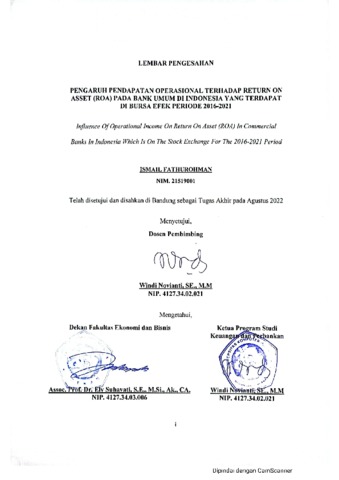 Fathurohman, Ismail (2022) Pengaruh Pendapatan Operasional Terhadap Return On Asset (Roa) Pada Bank Umum Di Indonesia Yang Di Bursa Efek Periode 2016-2021. Diploma thesis, Universitas Komputer Indonesia.