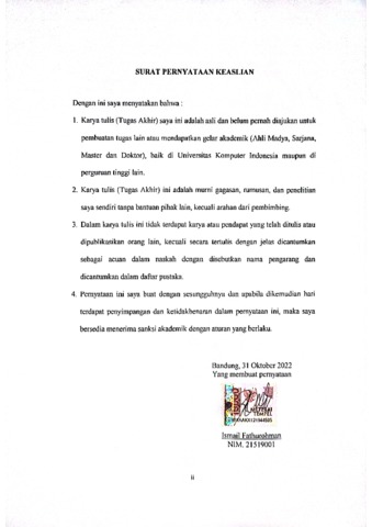 Unikom_Ismail Fathurohman_Surat Peryataan Keaslian.pdf - Published Version