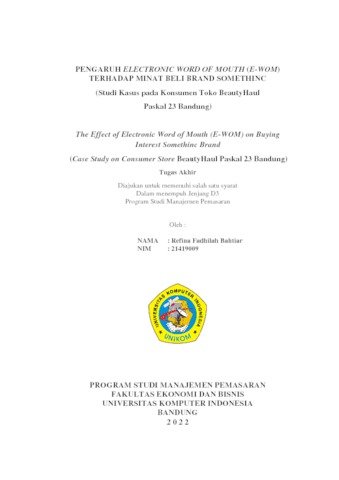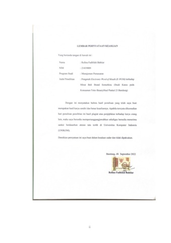 Bahtiar, Refina Fadhilah (2022) Pengaruh Electronic Word Of Mouth (E-Wom) Terhadap Minat Beli Brand Somethinc. Diploma thesis, Universitas Komputer Indonesia.