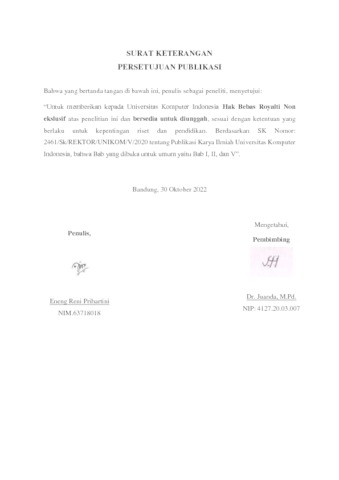 UNIKOM_ENENG RENI PRIHARTINI_SURAT KETERANGAN PERSETUJUAN PUBLIKASI.pdf - Published Version