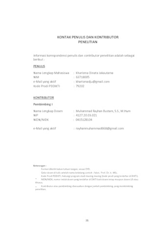 UNIKOM_Kharisma Dinata Jakautama_Lembar Kontak Penulis dan Kontributor Penelitian.pdf - Published Version