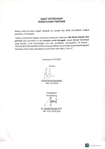 UNIKOM_Raihan Irham Ramadhan_Surat Keterangan Persetujuan Publikasi.pdf - Published Version