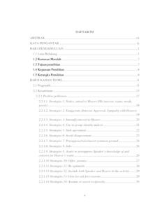 | Uncontrolled Keywords: | strategi kesantunan, tindak tutur, ilokusi, positive politeness, negative politeness. |