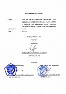 | Uncontrolled Keywords: | Semiotika, Semiosis Trikotomi, Sign(Representamen), Object, Interpretant, Poster Film, Film Crime Thriller |