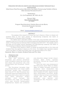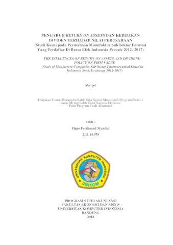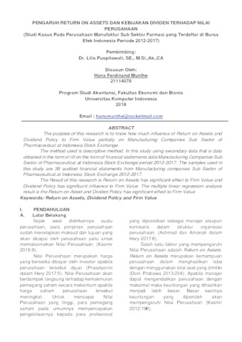 Munthe, Hans Ferdinand (2018) Pengaruh Return On Assets Dan Kebijakan Dividen Terhadap Nilai Perusahaan (Studi Kasus Pada perusahaan Manufaktur Su Sektor Farmasi Yang Terdaftar Di Bursa Efek Indonesia Periode 2012-2017). Other thesis, Universitas Komputer Indonesia.